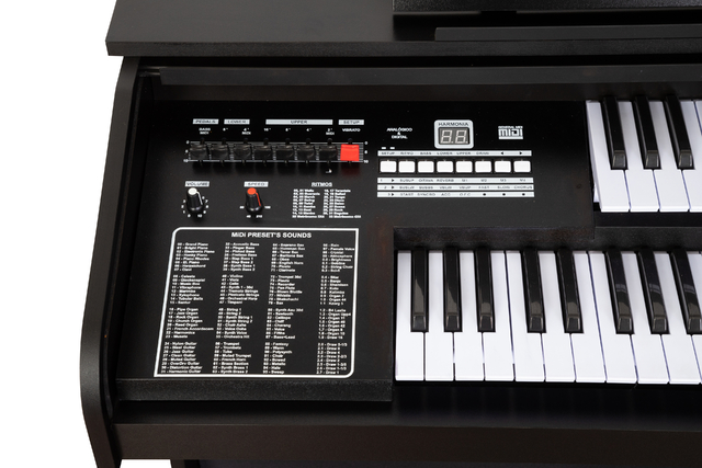 • Sons midi: 128 sons sendo 11 de órgãos prontos, 9 de drawbars completos com as flautas básicas e fracionadas (onde podem ser misturados com os sons dos drawbars dos teclados superior e inferior e o restante dos sons sampleados de outros instrumentos.